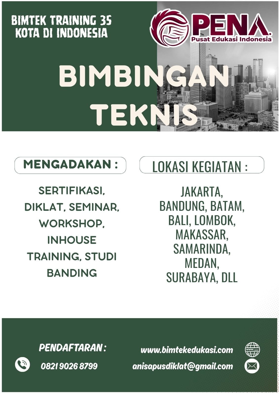 Hubungi kami untuk lokasi pelaksanaan bimtek & training terdekat, kami melayani beberapa kota besar diantaranya: