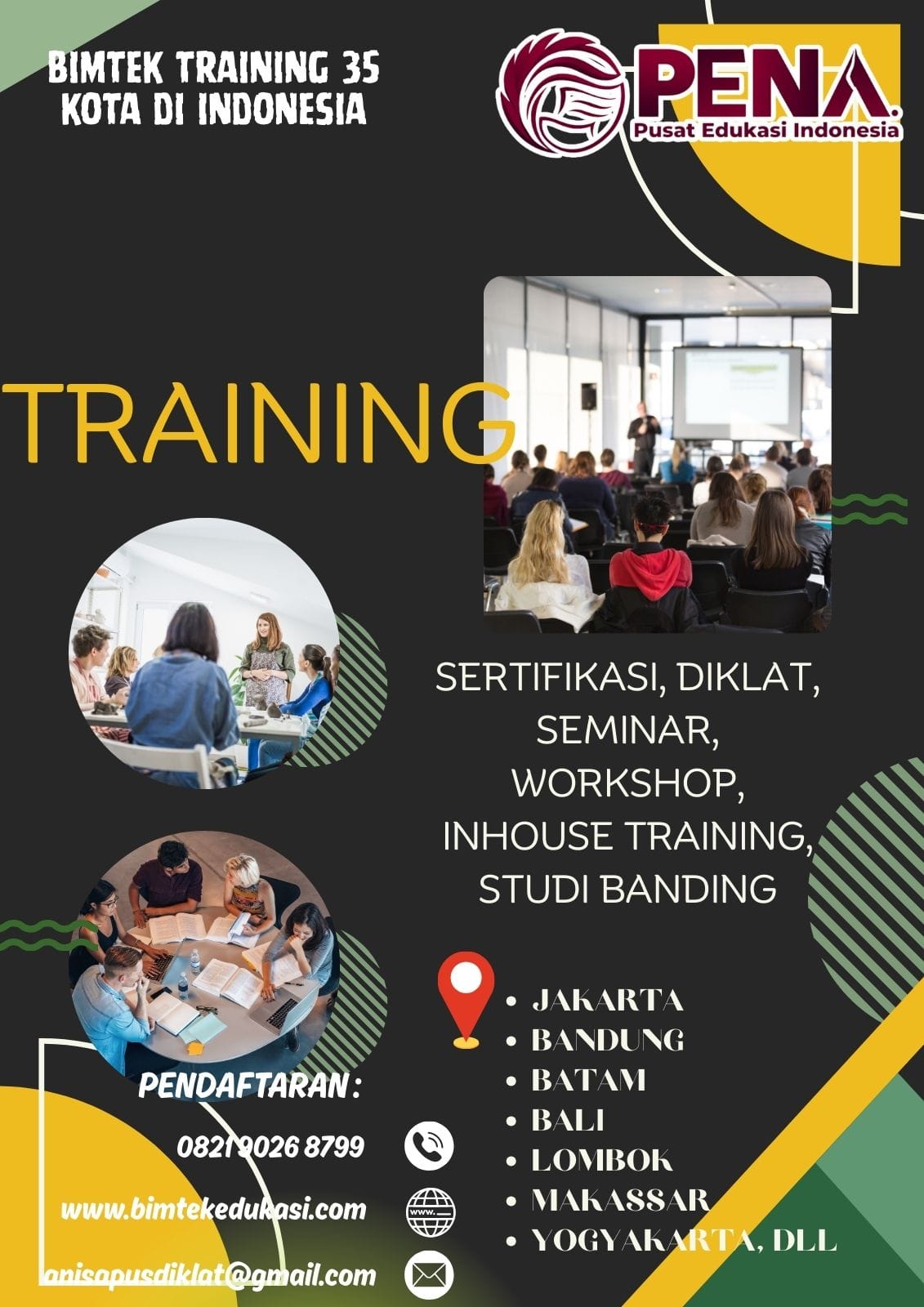 Hubungi kami untuk lokasi pelaksanaan bimtek & training terdekat, kami melayani beberapa kota besar diantaranya: