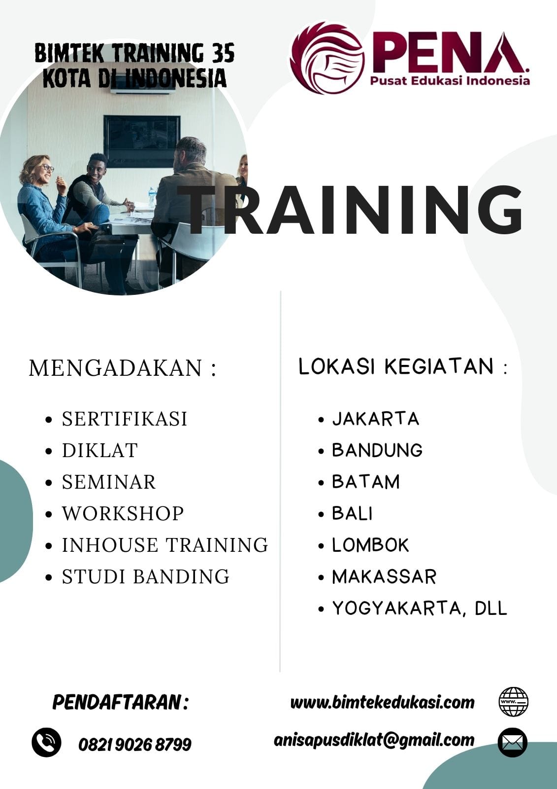Pusat Edukasi Indonesia menyelenggarakan Kegiatan Bimbingan Teknis dan Pendidikan Pelatihan yang dilaksanakan pada :