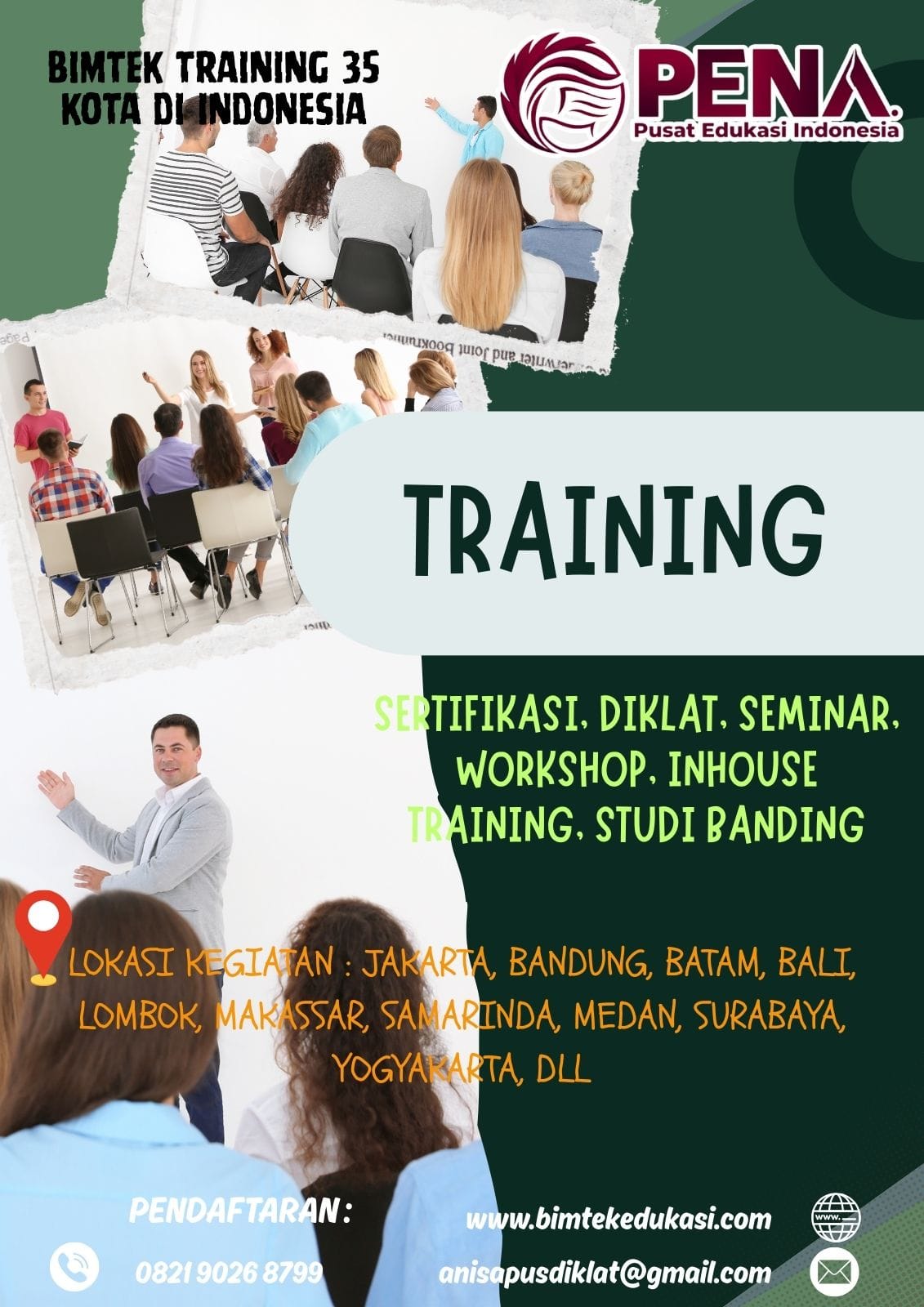 Hubungi kami untuk lokasi pelaksanaan bimtek & training terdekat, kami melayani beberapa kota besar diantaranya: