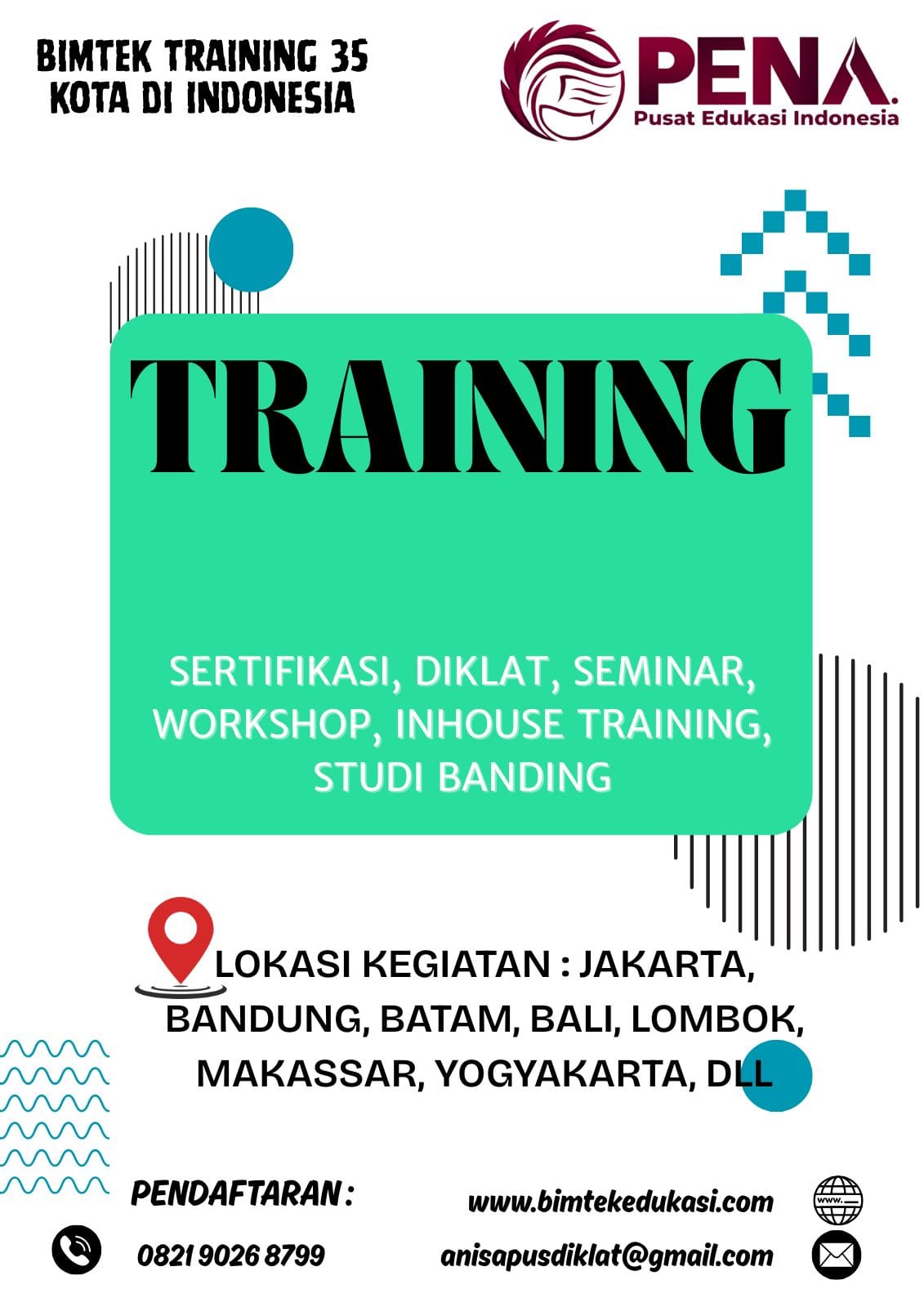 Hubungi kami untuk lokasi pelaksanaan bimtek & training terdekat, kami melayani beberapa kota besar diantaranya: